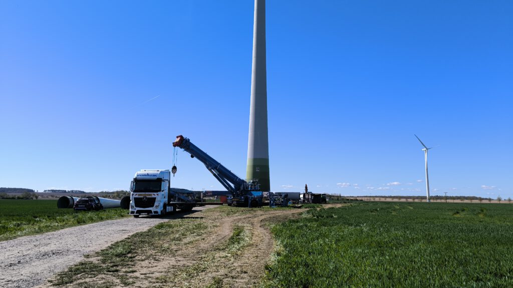 Zwischen Lübbersdorf und Friedland werden derzeit mehrere, rund 24 Jahre alte Windkraftanlagen (WKA) der Firma ENERCON zurückgebaut.